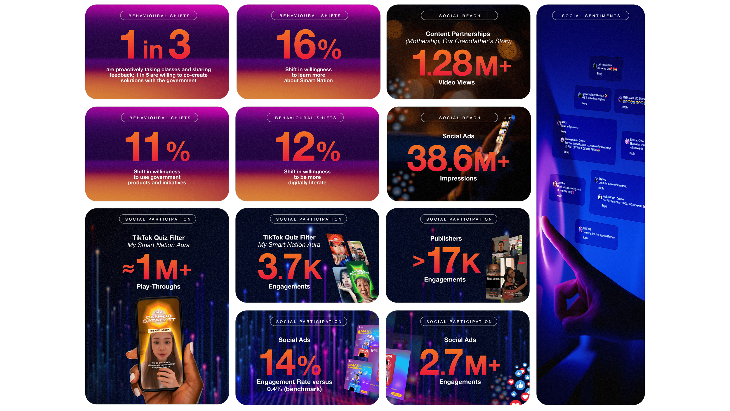 We helped citizens see Singapore’s Smart Nation future as their own. the campaign succeeded in shifting mindsets, with people actively engaging with the content, showing curiosity and pride in their role within Smart Nation.